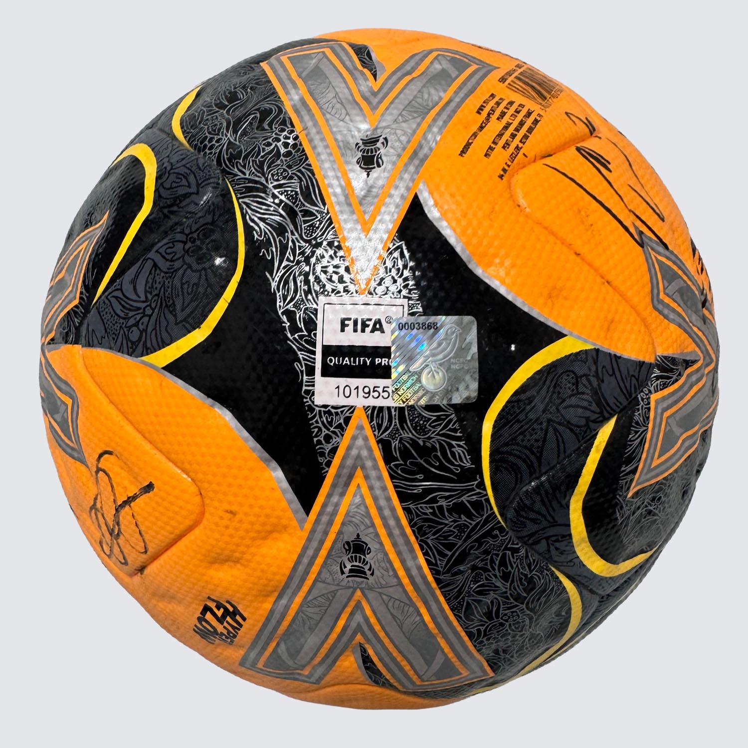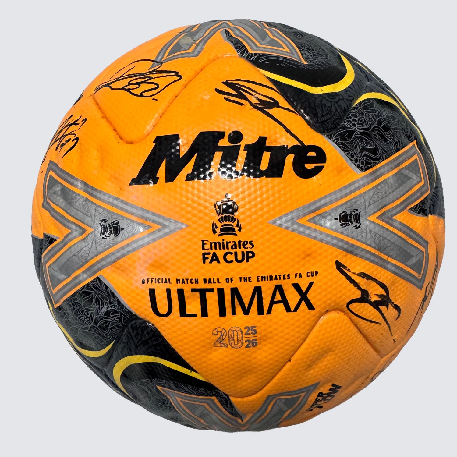 Own a true piece of football history with this official 2025/26 FA Cup match-used ball, proudly signed by 22 members of the Norwich City first team. This authentic ball has seen action in the heat of FA Cup competition and carries the marks of the beautiful game.