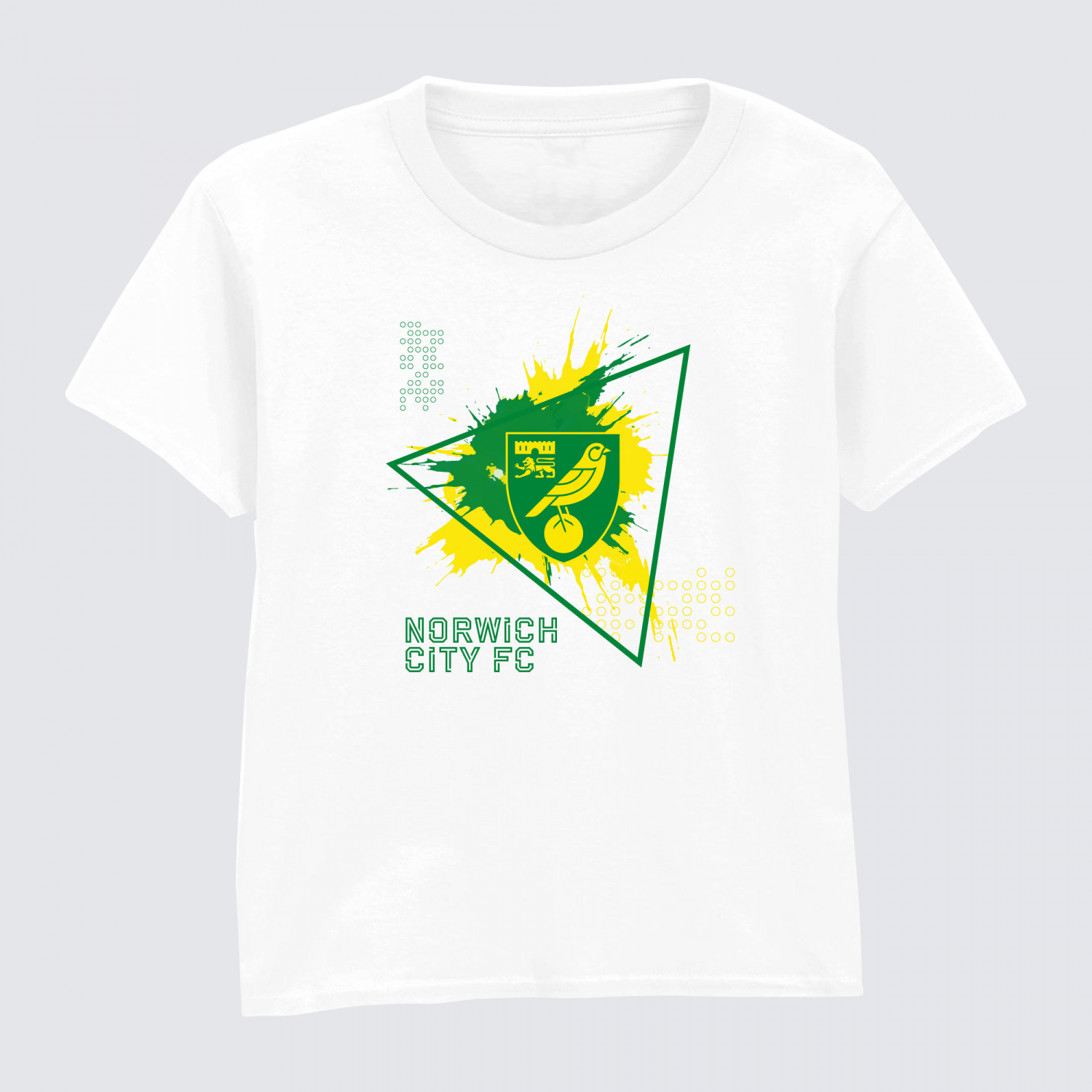 Bring bold club style to young supporters’ wardrobes with the Norwich City Junior Crest Splat T-Shirt Black. Featuring the iconic Norwich City crest set against a striking splatter graphic and angular design, this T-shirt delivers a fresh, modern look inspired by the club’s famous green and yellow colours.
